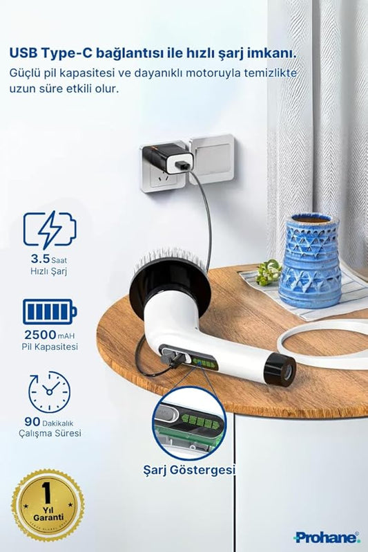 Elektryczna szczotka czyszcząca Prohane z 7 wymiennymi końcówkami