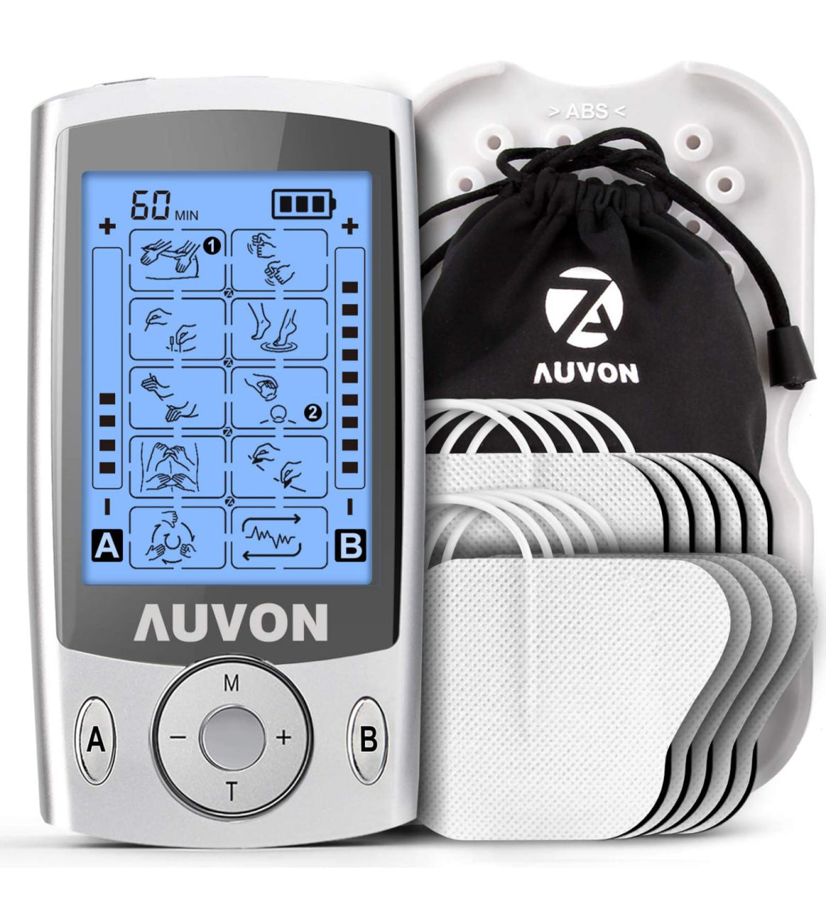 AUVON Urządzenie TENS – Stymulator mięśni z 20 programami i 10 elektrodami premium