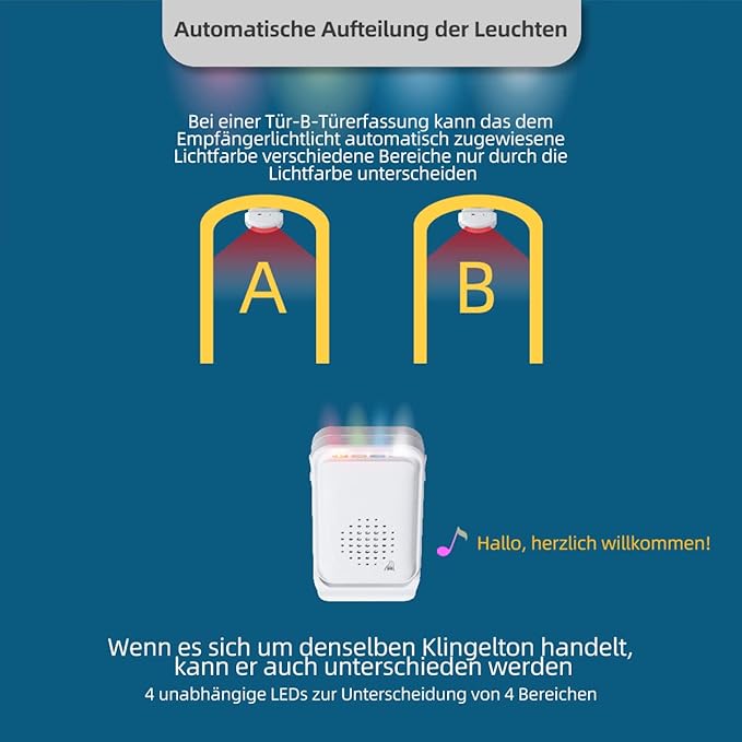 Bezprzewodowy detektor ruchu z czujnikiem podczerwieni i radarem — nowoczesny alarm dźwiękowy do domu lub biznesu, idealny na drzwi wejściowe, podjazd, garaż czy skrzynkę na listy. Czujnik dualny wykrywa ruch podczerwieni na odległość 2–8 m i radarowe zakłócenia na 6–8 m, zapewniając skuteczną ochronę. Po wykryciu alarm uruchamia gong z możliwością wyboru spośród 8 różnych dźwięków. Zestaw składa się z czujnika i odbiornika, działa bez kabli i łatwo się montuje. Świetny zarówno do użytku dziennego (np. sklep), jak i nocnego (ochrona przed włamaniem).