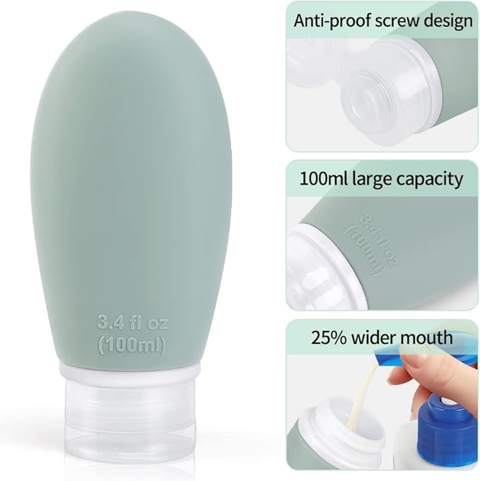Butelki podróżne Opret o pojemności 100 ml (3,4 oz) są zaprojektowane z myślą o wygodzie podróżnych. Wykonane z wysokiej jakości silikonu spożywczego, są wolne od BPA i spełniają normy TSA, co sprawia, że są idealne do bagażu podręcznego. Ich szczelna konstrukcja zapobiega wyciekom, a elastyczny materiał ułatwia dozowanie zawartości. Butelki są łatwe do napełnienia i czyszczenia, a różne kolory umożliwiają łatwą identyfikację zawartości. Mogą być używane do przechowywania szamponu, odżywki, balsamu, żelu pod prysznic, kremu czy innych płynów.
