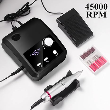 Mocny silnik 35 W z regulowaną prędkością do 45 000 obr./min oraz wyświetlaczem HD LCD — idealna do precyzyjnego manicure i pedicure.