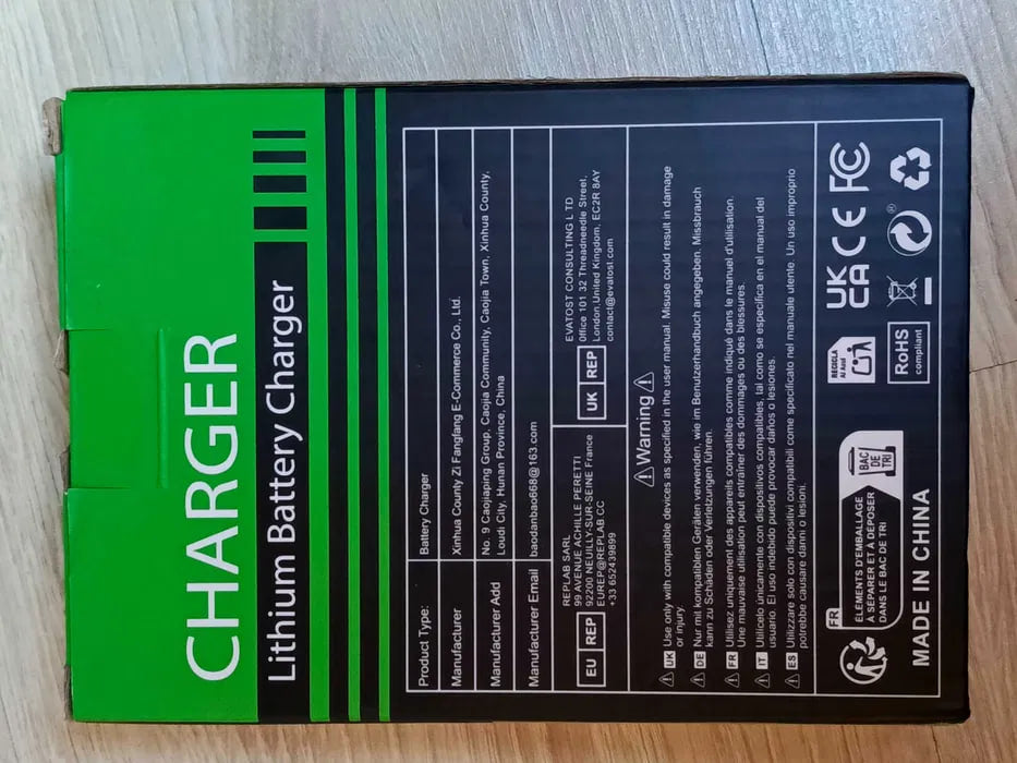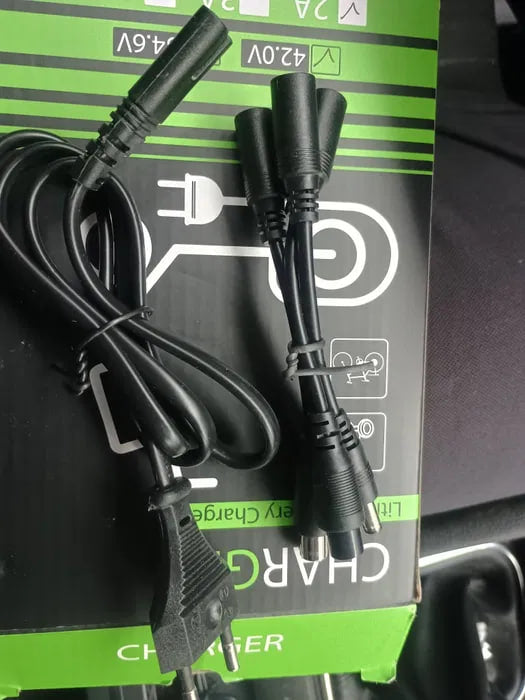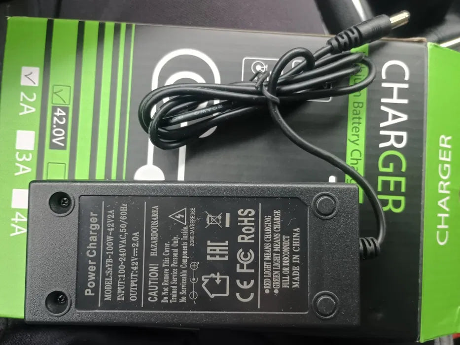 Uniwersalna ładowarka przeznaczona do hulajnóg elektrycznych, rowerów elektrycznych oraz innych pojazdów z akumulatorami litowo-jonowymi. Wyposażona w zabezpieczenia przed przeładowaniem, zwarciem i przegrzaniem.