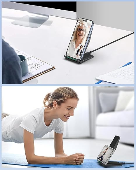 Nanami M220 to bezprzewodowa (Qi) ładowarka w formie stojaka, umożliwiająca szybkie ładowanie 1,4× szybciej niż standardowe podstawki dzięki dwóm cewkom—umożliwia ładowanie telefonu w pionie lub poziomie. Kompatybilna z wieloma urządzeniami: Samsung (10 W), iPhone (7,5 W) i innymi obsługującymi Qi (5 W). Wyposażona w ergonomiczny kształt, wskaźnik LED i zabezpieczenia przed przegrzaniem oraz przeładowaniem.