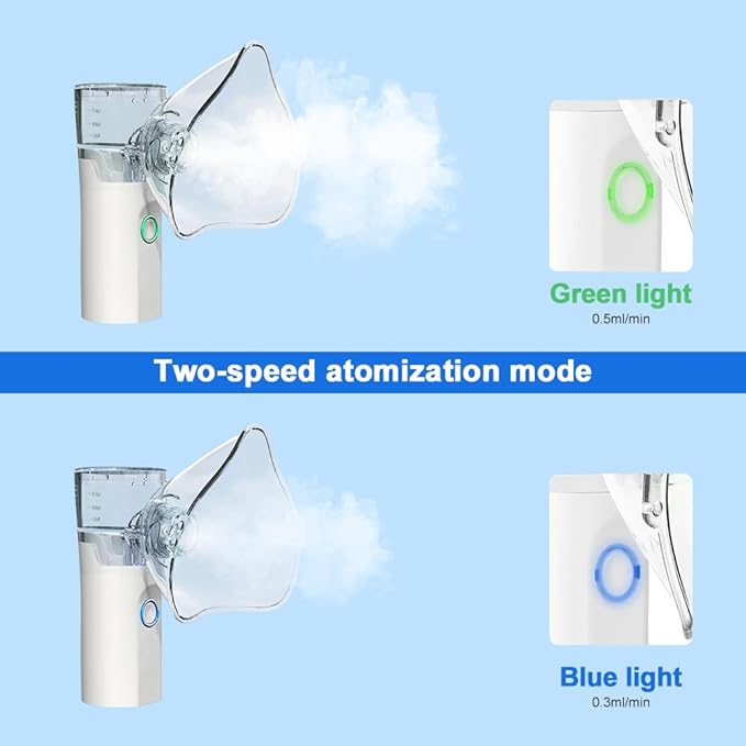 Nebulizator przenośny USB dla dzieci i dorosłych z regulowaną szybkością atomizacji zapewnia wysoką efektywność leczenia – mgiełka <5 μm szybko dociera do dróg oddechowych i płuc. Urządzenie jest ciche (<40 dB), lekkie i łatwe w użyciu, z wbudowaną baterią 450 mAh pozwalającą na 50–60 minut pracy po pełnym naładowaniu. W zestawie znajdują się ustnik i dwie maski (dla dzieci i dorosłych).