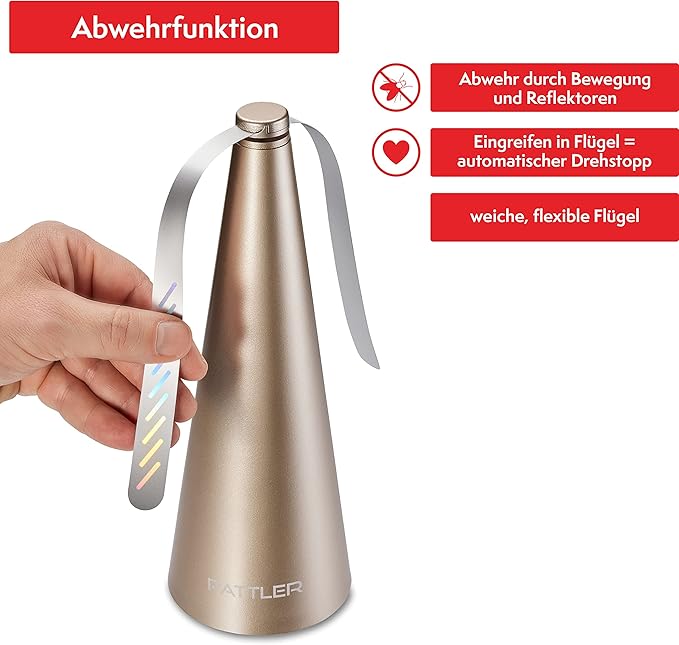 Bez chemii, działa cicho i bezpiecznie. Obracające się miękkie łopatki z paskiem odblaskowym skutecznie odstraszają owady znad jedzenia. Idealny do domu, ogrodu, pikniku czy grilla. Zasilany bateriami (brak w zestawie).