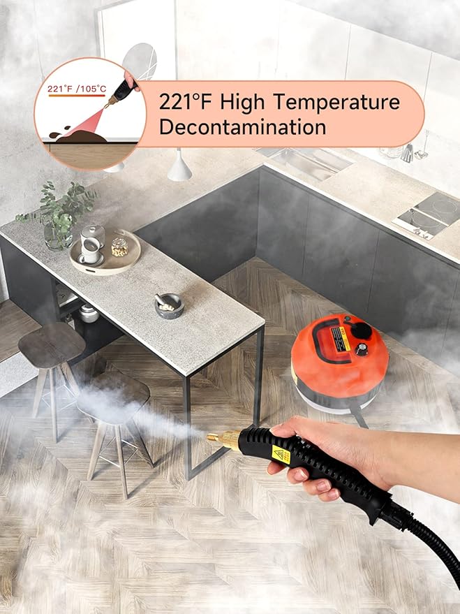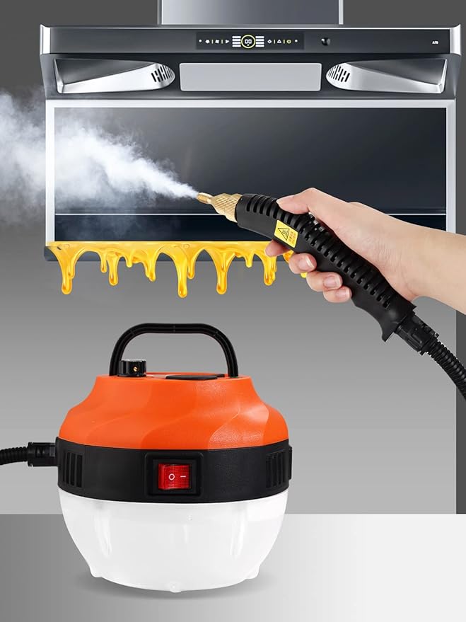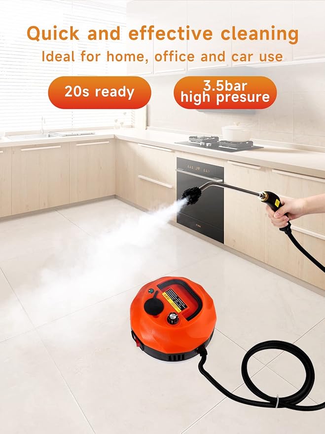 Ręczny parowy czyścik wysokociśnieniowy 2800W – kompaktowy odkurzacz parowy do czyszczenia w wysokiej temperaturze, idealny do użytku domowego (pomarańczowy)