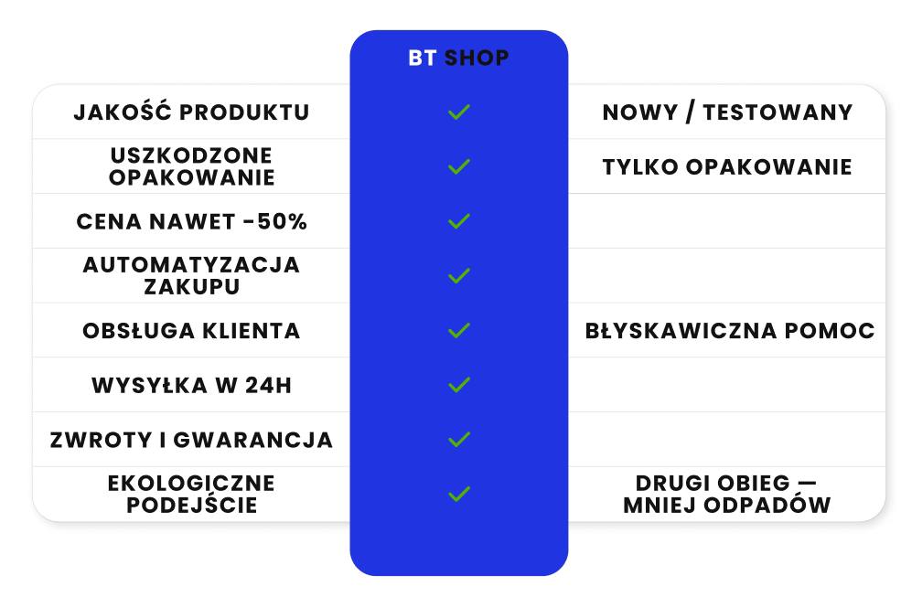 Nasze produkty to zwroty, nadwyżki, elektronika z uszkodzonym opakowaniem oraz rzeczy, których klienci nie odebrali po zakupie. Dzięki temu możemy oferować wysokiej jakości elektronikę w atrakcyjnych cenach.