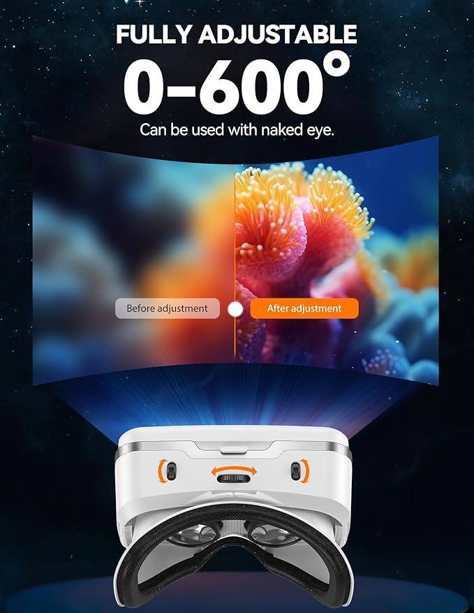 TECKNET VR Headset for Phone – lekkie gogle VR do smartfonów (4,7–7,2″) z soczewkami HD o polu widzenia 90–110°, ochroną przed niebieskim światłem i regulacją ostrości. Komfortowy ergonomiczny pałąk i miękka wyściółka twarzy. Posiada kontroler Bluetooth dla wygodnego sterowania i lepszej immersji.
