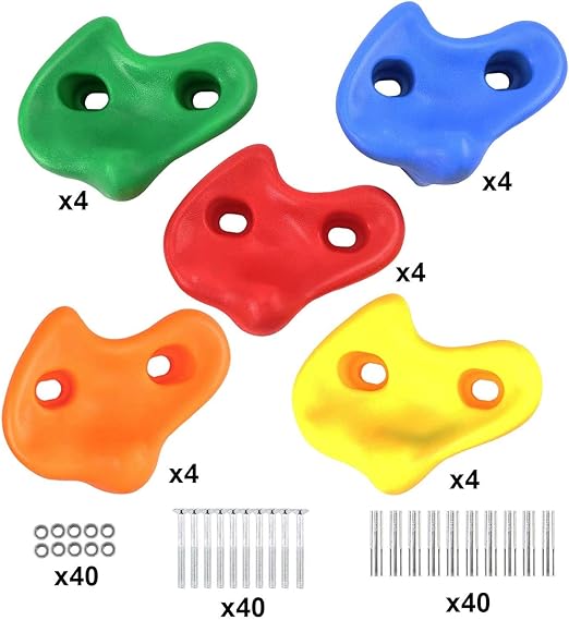 WADEO Zestaw kolorowych uchwytów wspinaczkowych dla dzieci, 20 sztuk z materiałami montażowymi – idealne do ścianek wspinaczkowych, placów zabaw i wież do zabawy