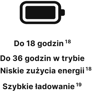 W tym modelu bateria może wytrzymać nawet do 18-tu godzin. A w trybie niskiego zużycia energii nawet do 30 godzin.