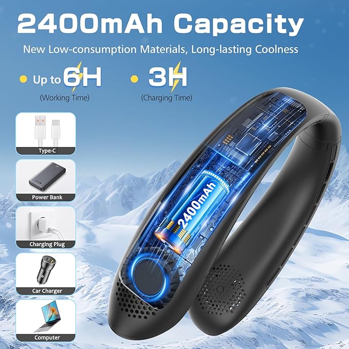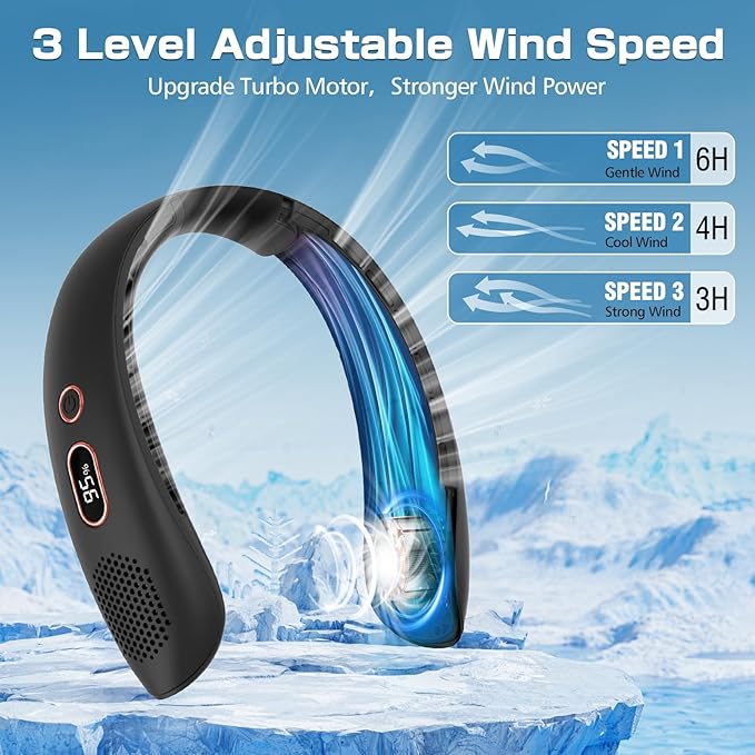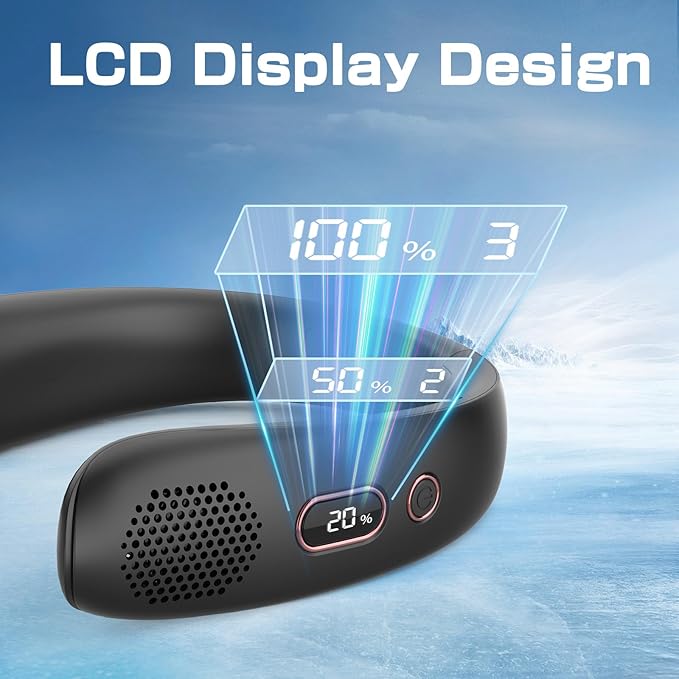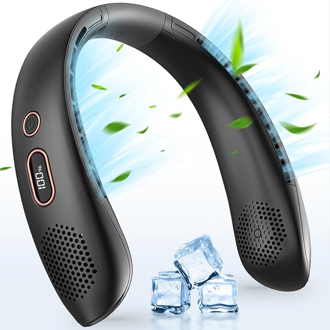YAZEKY przenośny wentylator na szyję bez łopatek – lekkie, bezdotykowe chłodzenie 360°, ładowanie przez USB, 3 prędkości, wygodny do noszenia bez użycia rąk, idealny na zajęcia, podróże, prezent dla nauczycieli.